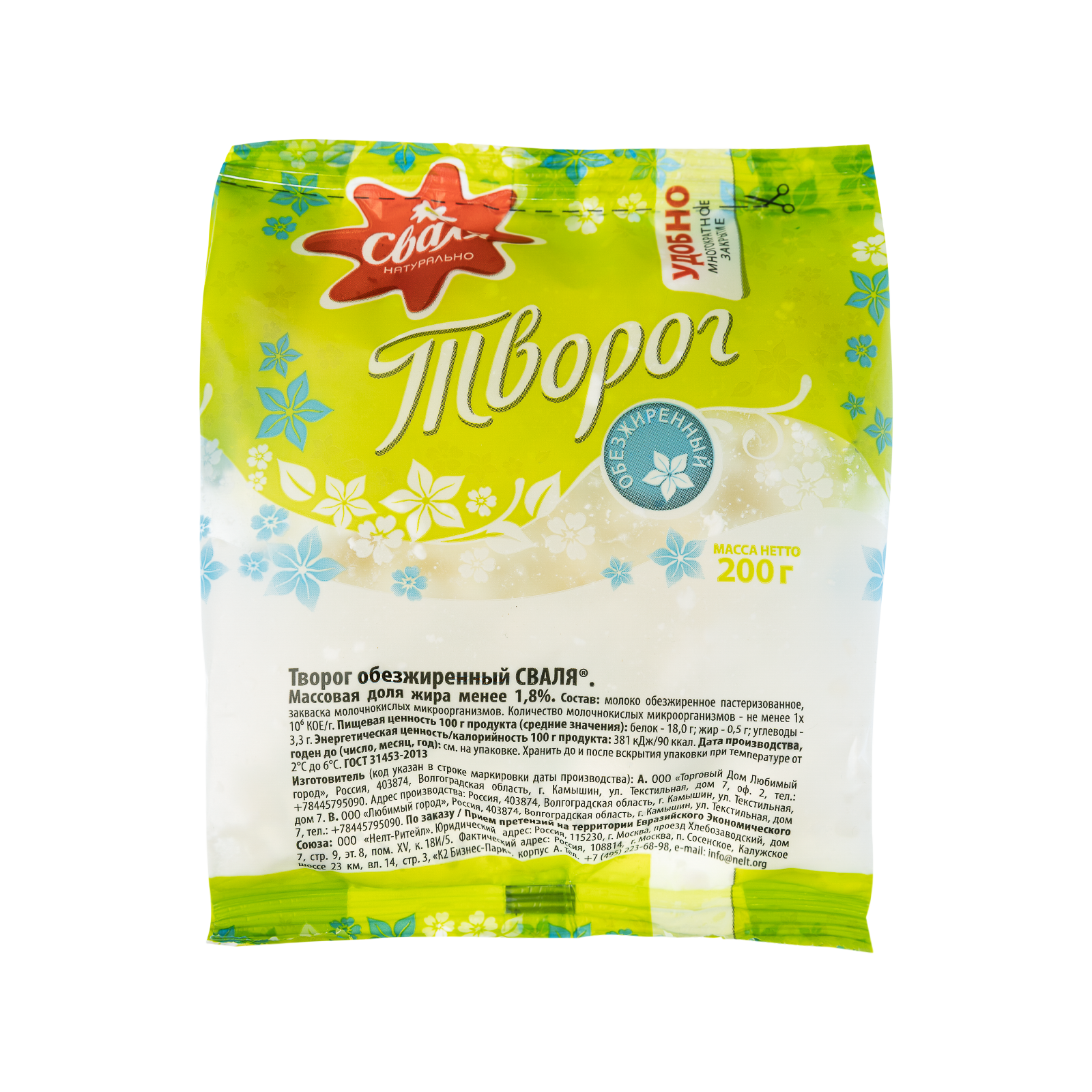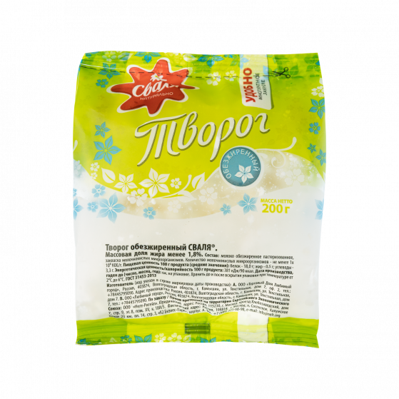 Творог обезжиренный 6шт*200гр (ТМ 'Сваля' Россия)