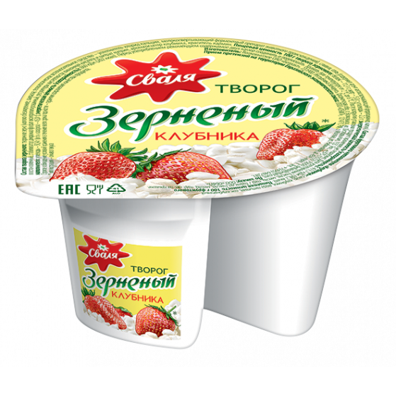 Творог зерненый и фруктовый наполнитель Клубника 5% 12шт*130гр (ТМ 'Сваля', Беларусь)