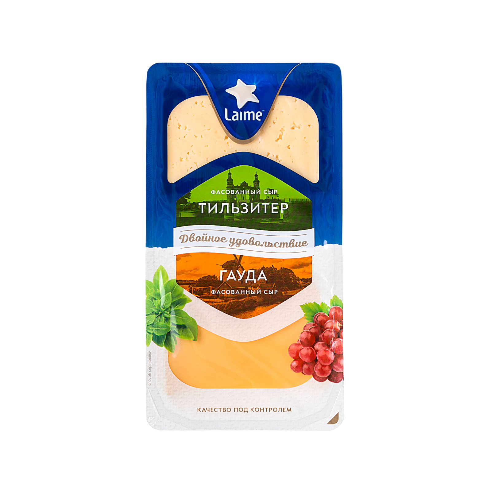 Ассорти полутвердых сыров Гауда 45% и Тильзитер 45% т.з Laime 5шт*160гр (слайсы)(Россия, Спб)