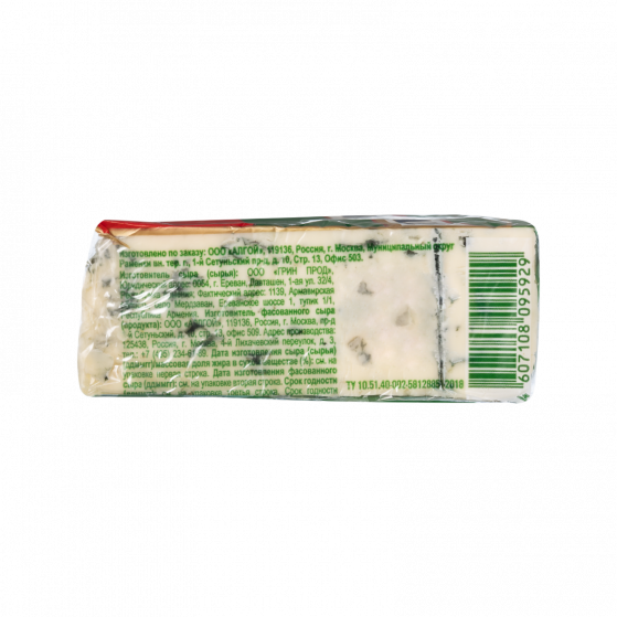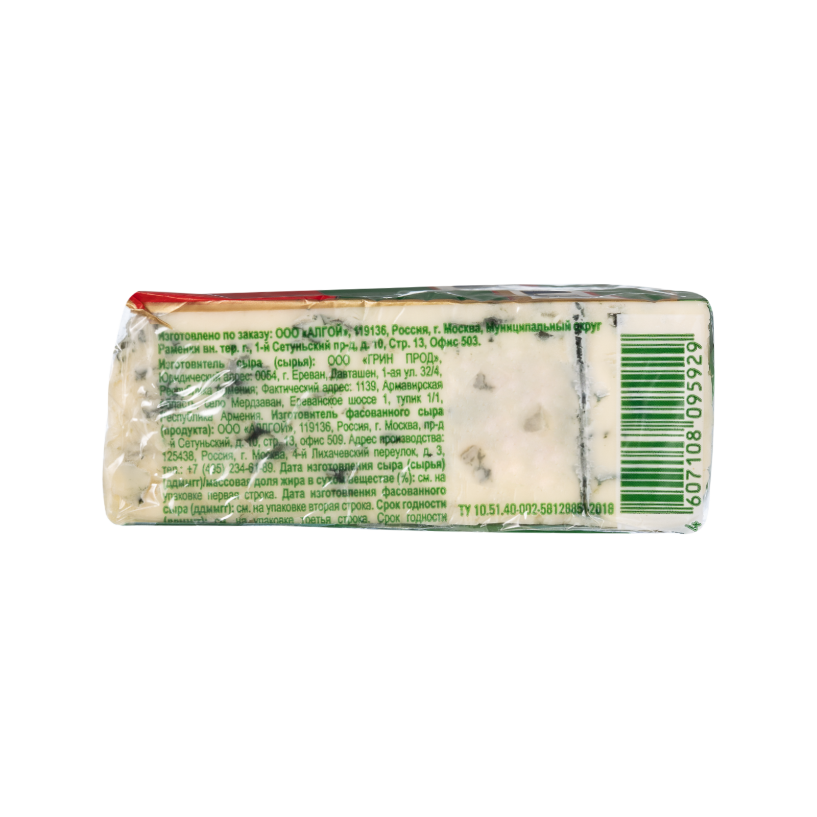 Пастеризованное коровье молоко, пищевая соль, плесневые грибы Penicillium roqueforti, микробиологический молокосвертывающий фермент, мезофильные молочнокислые бактерии