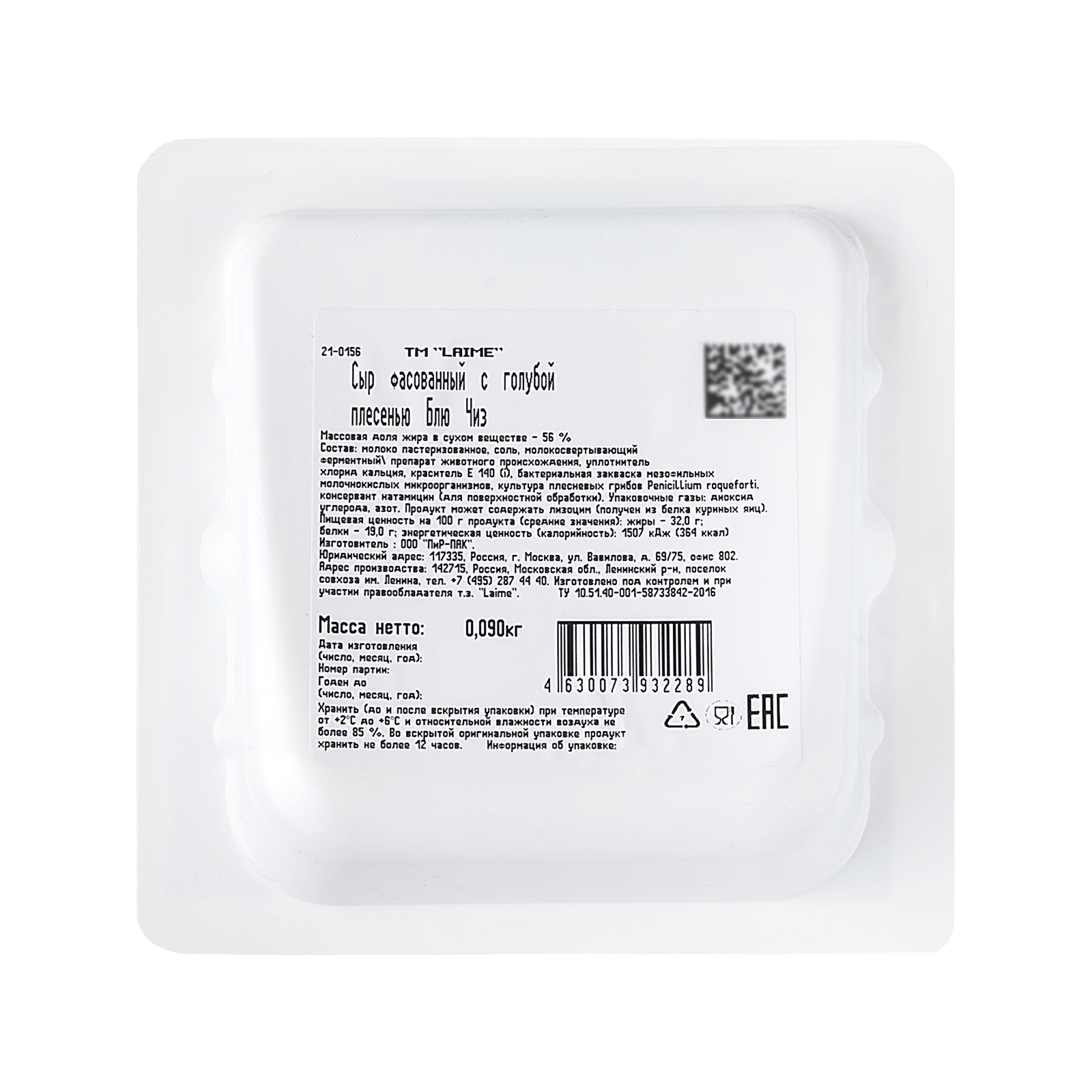 Лайме с голубой плесенью 'БЛЮ ЧИЗ' 56% 90 гр