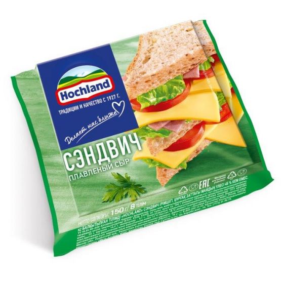 Сыр Hochland плавленый Сэндвич м.д.ж. 45% 9шт*150гр ломтики (Россия)