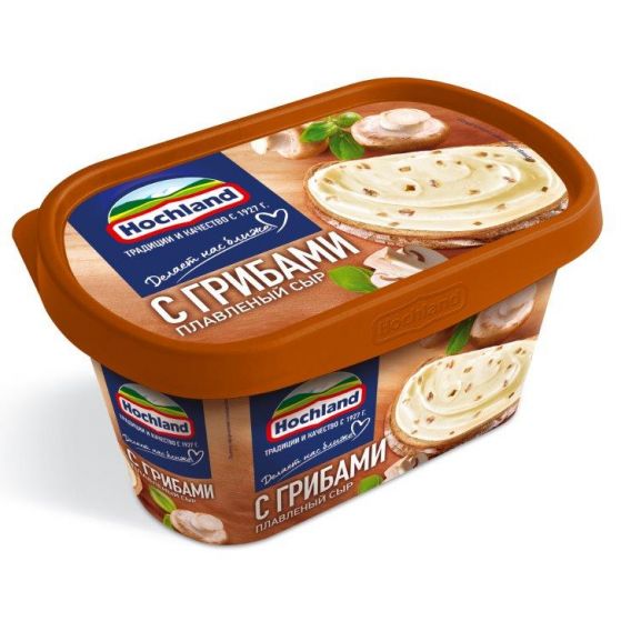 Сыр Hochland плавленый с грибами м.д.ж. 55% 6шт*400гр в ванночках (Россия) NEW