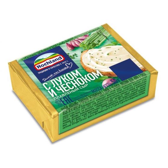 Сыр Hochland плавленый пастообразный с луком и чесноком м.д.ж. 35% 36шт*50гр блочки (Россия)