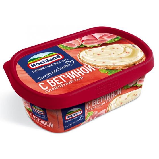 Сыр Hochland плавленый с ветчиной м.д.ж. в с.в. 55% 8шт*200гр в ванночках (Россия) NEW
