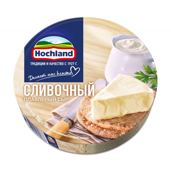 Сыр Hochland плавленый пастообразый Сливочный м.д.ж. 50% 10шт*140гр в круглых коробочках (Россия)