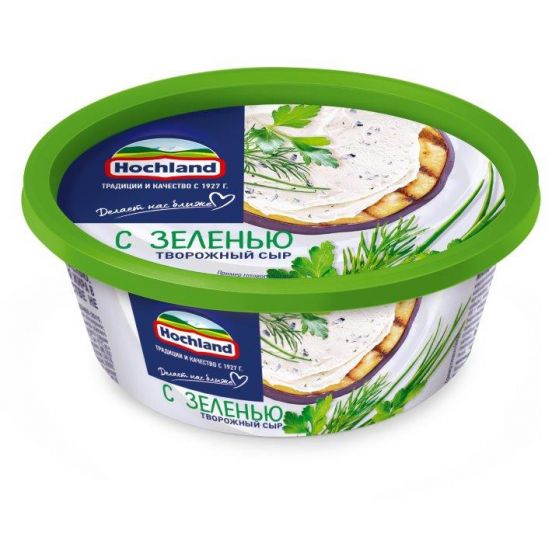 Сыр творожный «Hochland» с зеленью м.д.ж. 60% 6шт*140гр (Россия)