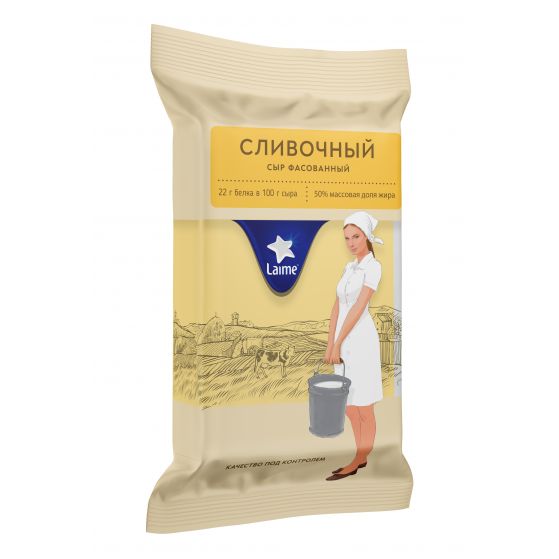 Сыр полутвердый фасованный 'Сливочный'ТЗ 'LAIME' м.д.ж. в с.в. 50% фас. 10шт*180г (кусок)(Россия, Спб)