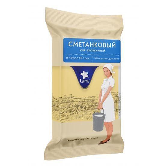 Сыр полутвердый фасованный 'Сметанковый' ТЗ 'LAIME' м.д.ж. в с.в. 50% фас. 6шт*350гр кусок (Россия, Спб)