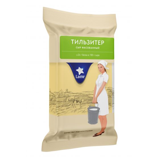 Сыр полутвердый фасованный 'Тильзитер' ТЗ 'LAIME' м.д.ж. в с.в. 45% фас. 10шт*180 г (Россия, Спб)