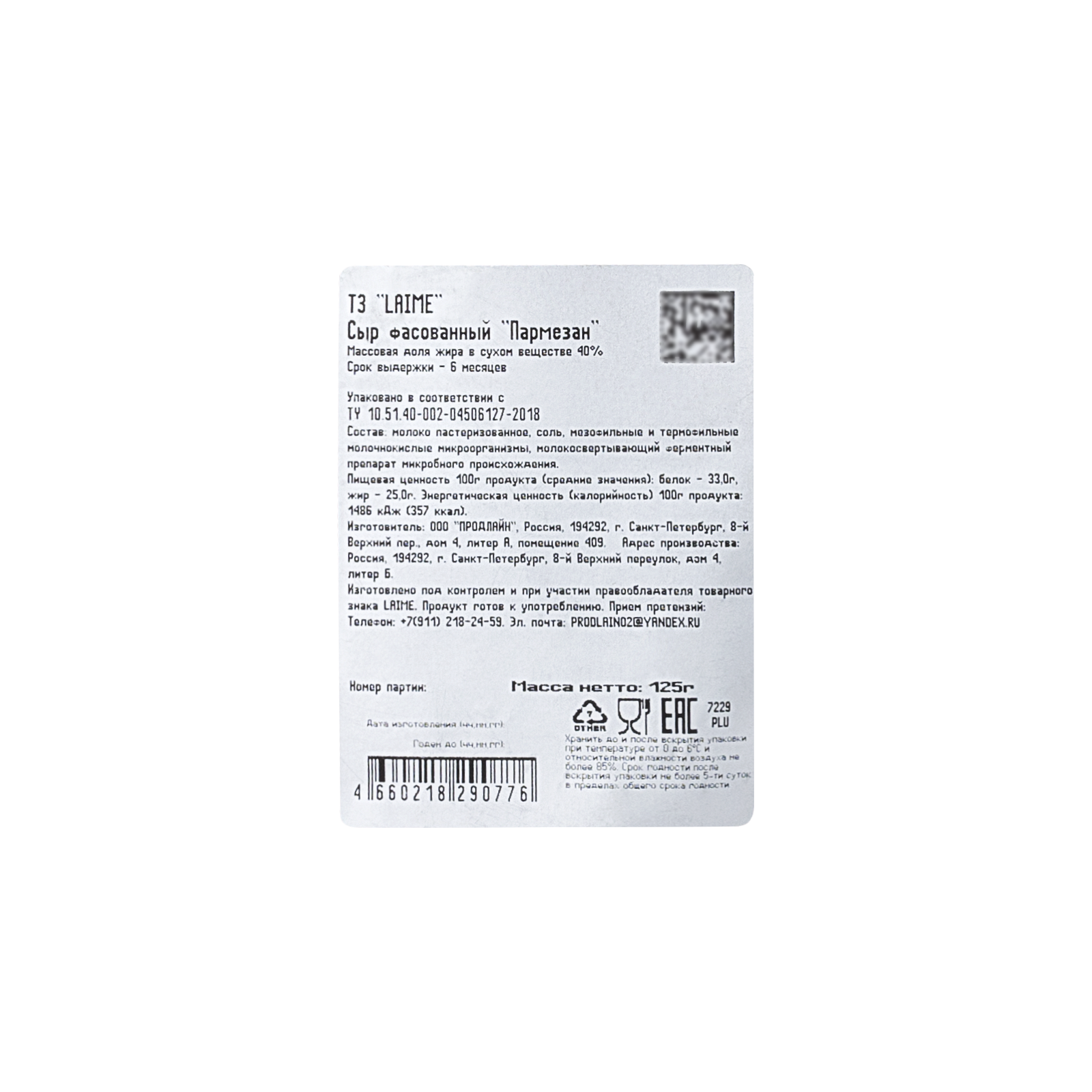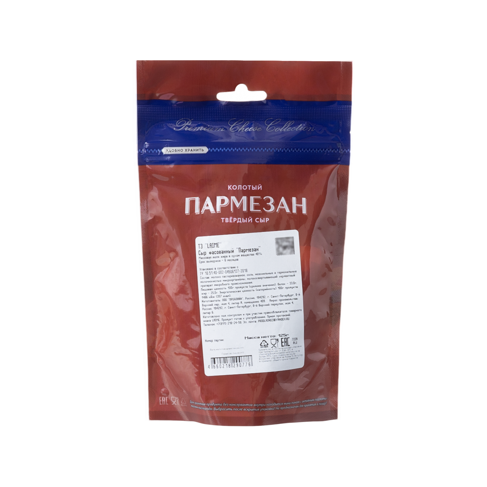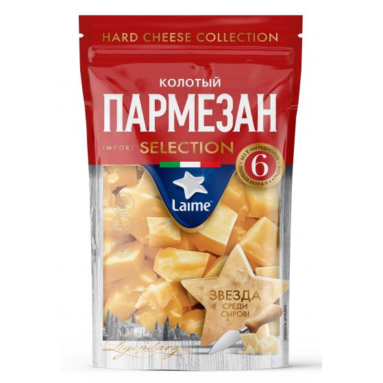 Сыр фасованный 'Пармезан' 6 мес. ТЗ 'LAIME' м.д.ж. в с.в. 40% фас. 10шт*125г (колотый, дой-пак)(Россия, Спб)