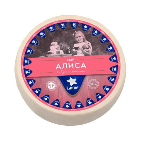 Сыр полутвердый 'Алиса' со вкусом топленого молока м.д.ж. в с.в. 50% 2шт*~9кг цилиндр (ОАО 'Пружанский молочный комбинат', Беларусь)