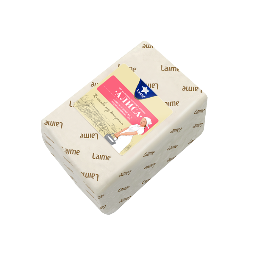 Сыр полутвердый 'Алиса' со вкусом топленого молока м.д.ж в с.в. 50% 8шт*~1,8кг кубик ТЗ 'LAIME' (Дятловский филлиал ОАО 'Молочный Мир', Беларусь)