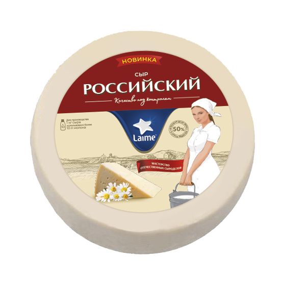 Сыр полутвердый 'Российский особый' м.д.ж в с.в. 50% 2шт*~6кг круг тз Laime (Дятловский филлиал ОАО 'Молочный Мир', Беларусь)