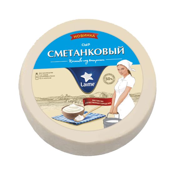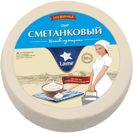 Сыр полутвердый 'Сметанковый' м.д.ж в с.в. 50% 2шт*~6кг круг тз Laime (Дятловский филлиал ОАО 'Молочный Мир', Беларусь)