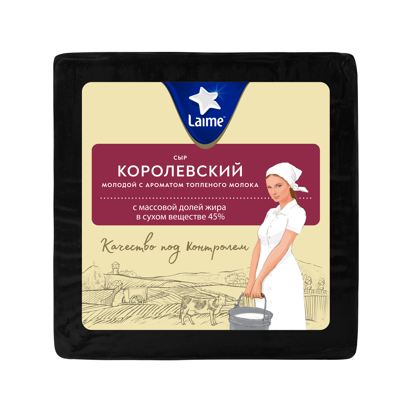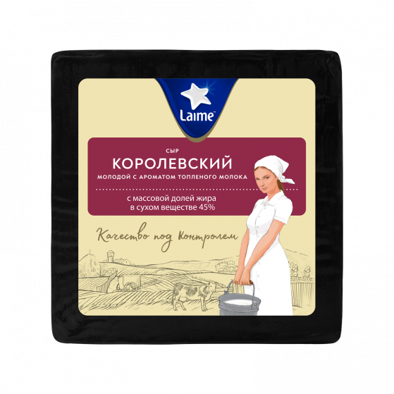 Сыр 'Королевский' молодой с ароматом топленого молока м.д.ж в с.в. 45% тз Laime 8шт~*1,7кг кубик (Беларусь)