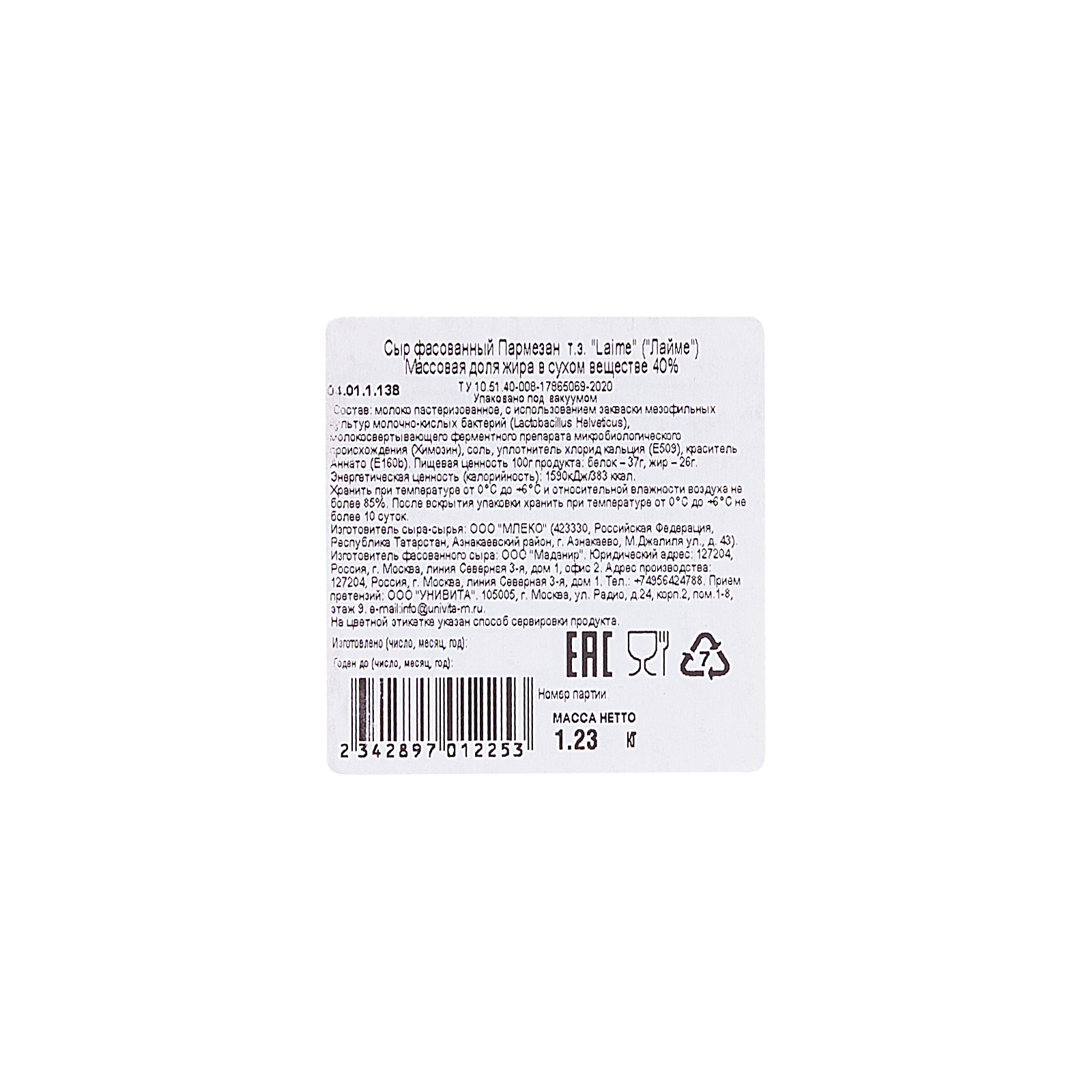 Сыр фасованный 'Пармезан' тз 'Laime' м.д.ж. в с.в. 40% фас. 4шт*~1,1кг (Россия, Спб) МЕТРО