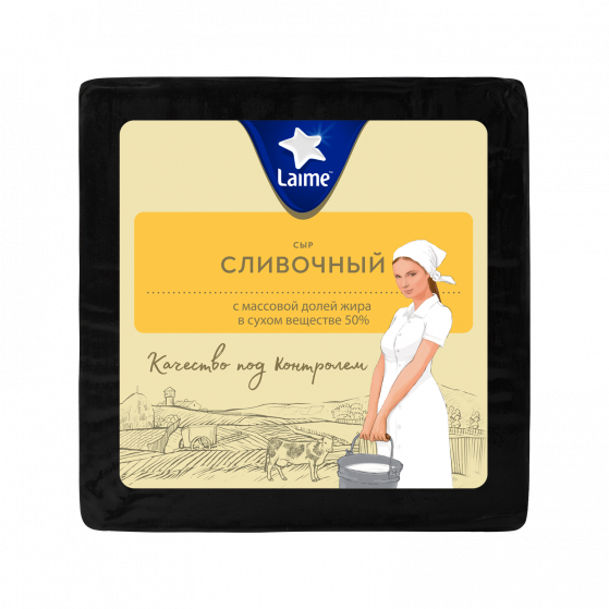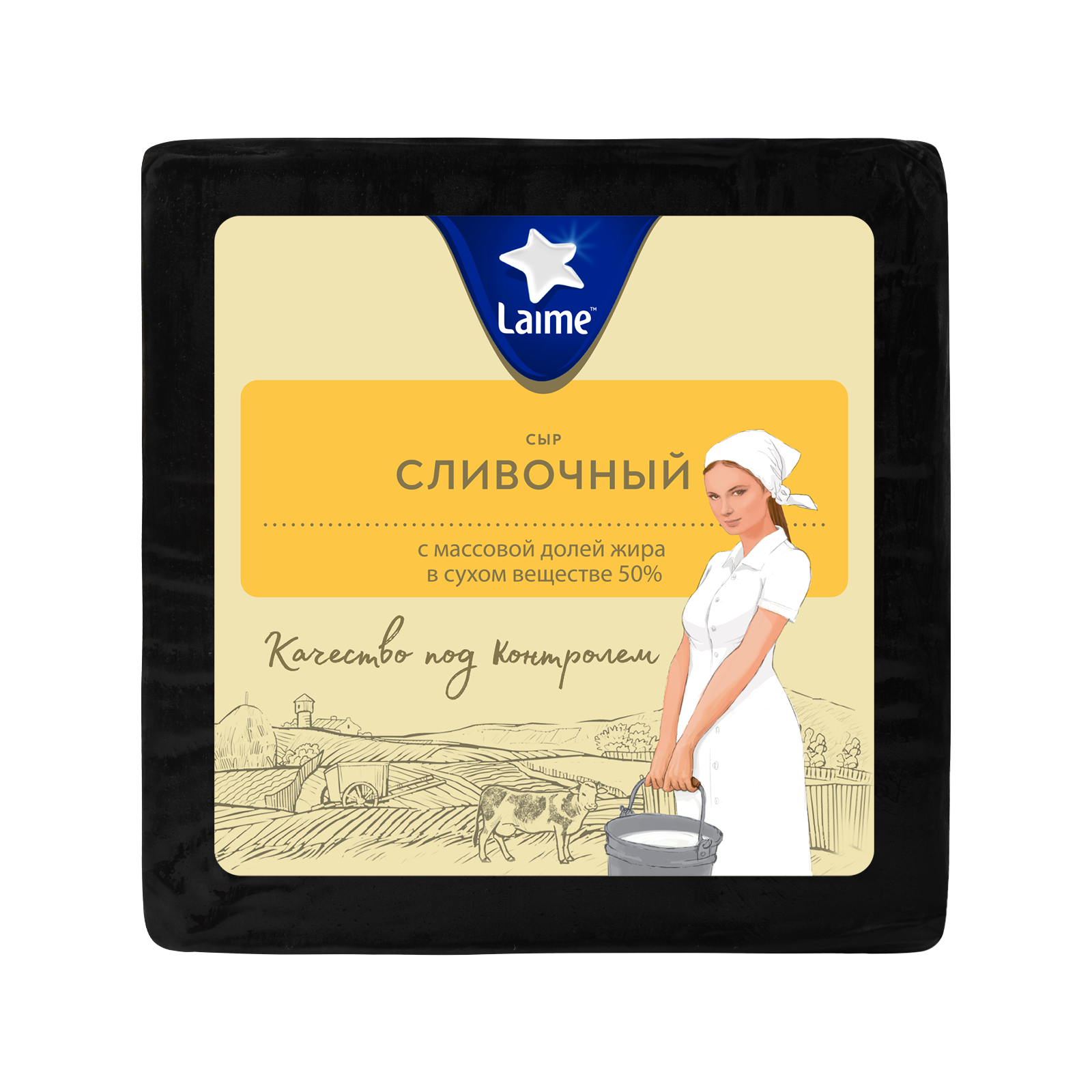 Сыр полутвердый 'Сливочный' м.д.ж в с.в. 50% тз Laime 8шт~*1,7кг кубик (Беларусь)
