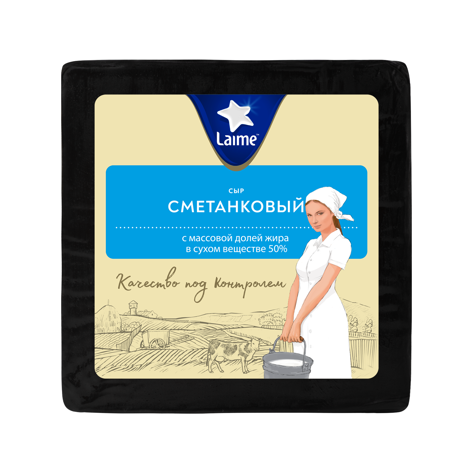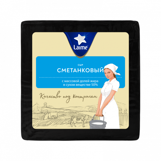 Сыр полутвердый 'Сметанковый' м.д.ж в с.в. 50% тз Laime 8шт~*1,7кг кубик (Беларусь)